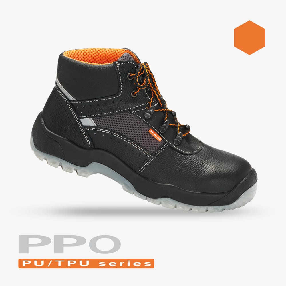 • wyposażone w wewnętrzny, dopasowany do naturalnego kształtu stopy podnosek metalowy, skutecznie chroniący stopę przed uderzeniem z energią 200J, uskok podnoska wewnątrz obuwia skutecznie łagodzi pianka poliuretanowa, dzięki czemu podnosek jest prawie niewyczuwalny